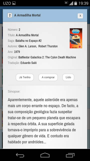É uma aplicação para tablets e smartphones Android que tem como objectivo a gestão de algumas das mais importantes colecções de livros de ficção científica publicadas em Portugal.